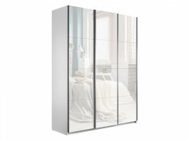 Шкаф-купе 3-х дверный Прайм Белое стекло/Белое стекло/Белое стекло 1800 мм Белый снег
