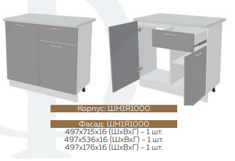 ШН1Д1Я600 Шкаф нижний с 1-м ящиком и 1-й дверью Белый глянец холодный/Графит софт