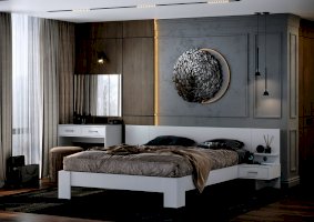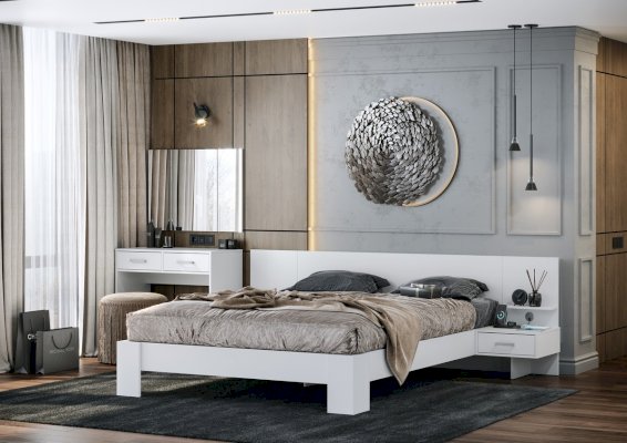 • Приятное для глаз цветовое решение Белый гладкий визуально делает спальню немного просторнее