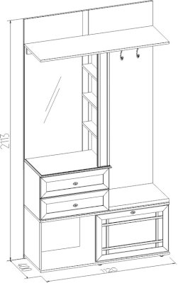 Это находка для маленькой прихожей. В небольшом по габаритам модуле сочетается всё необходимое: вешалки и крючки, полки и отделения за глухими фасадами, предусмотрено зеркало с подсветкой. Стационарная штанга на подвесах добавит вешалке функциональности. Штанга на подвесах выдерживает нагрузку до 25 кг. Встроенная светодиодная подсветка включается при помощи аккуратного кнопочного выключателя.