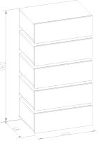 Комод OSLO 6 – практичный и вместительный. Лаконичные гладкие фасады ящиков в декоре Дуб Серый в комбинации с контрастными черными планками делают комод поистине уникальным. Пять выдвижных ящиков глубиной 14 см способны поместить в себя все необходимое, а компактная конструкция сэкономит место в комнате. Все ящики оснащены направляющими полного выдвижения. Такие направляющие делают открывание и закрывание бесшумным.
