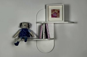 Полка выполнена из ЛДСП, что обеспечивает прочность и надёжность конструкции. Модель оснащена двумя открытыми полками, на которых удобно разместить книги, игрушки, декоративные элементы или учебные принадлежности. Открытый формат делает нужные вещи всегда доступными и визуально не перегружает пространство.